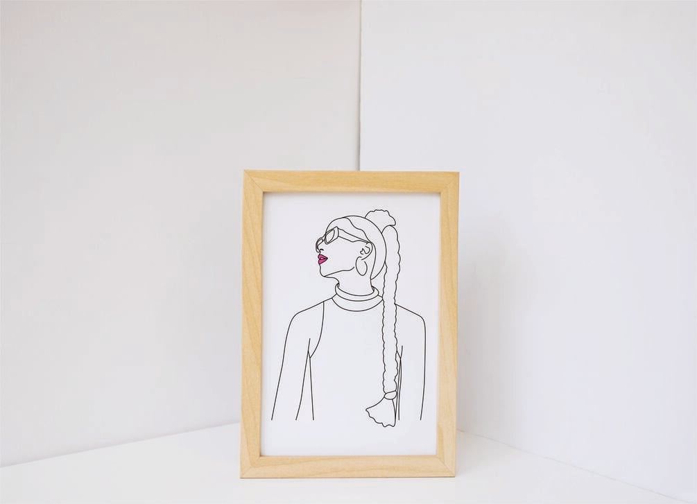 Girl with sunglasses glass printable line art print
