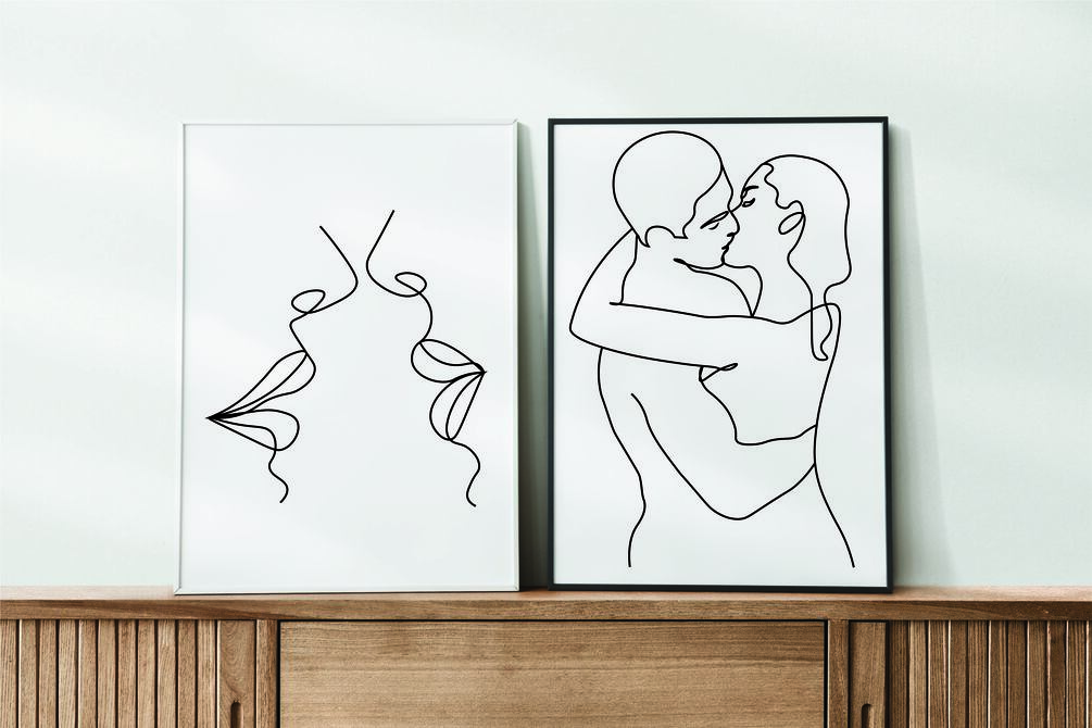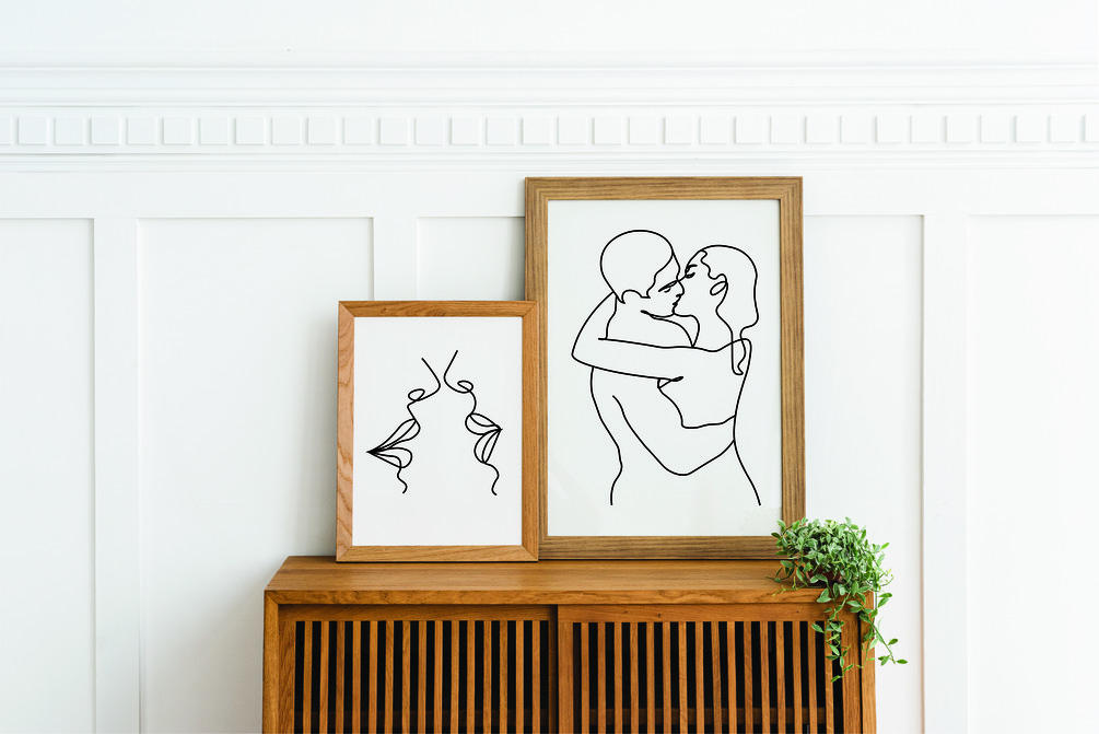 Line Art Print Set, Lovers Line Art, Set of 2 prints, Printable Art, Couple Art Print, Minimal Wall Art