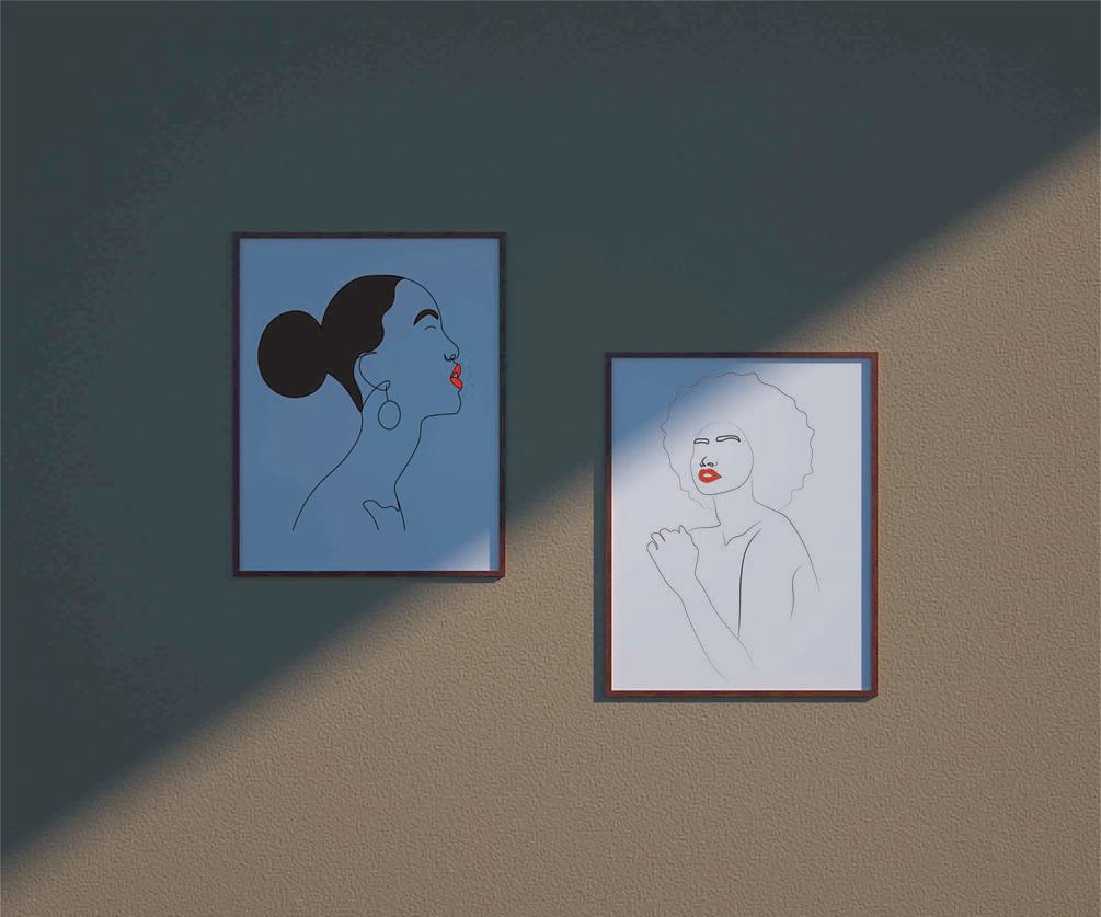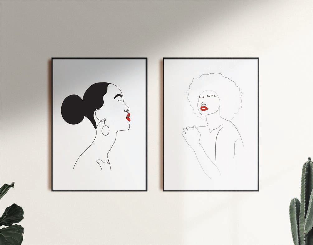 Line Art African women Print Set, Set of 2 prints, Printable Art